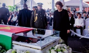 Expertop civiele etiquette Dr. Asmosi Nabadasi voegt toe: “In geen enkel land ter wereld mag je een uitvaart hebben zonder de zittende president drie keer te bedanken. Dit is internationaal protocol.”